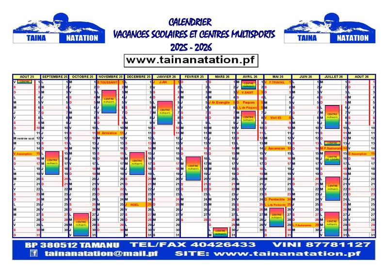 Taina Natation organise pendant les périodes de vacances scolaires des centres multisports à dominante sportive.